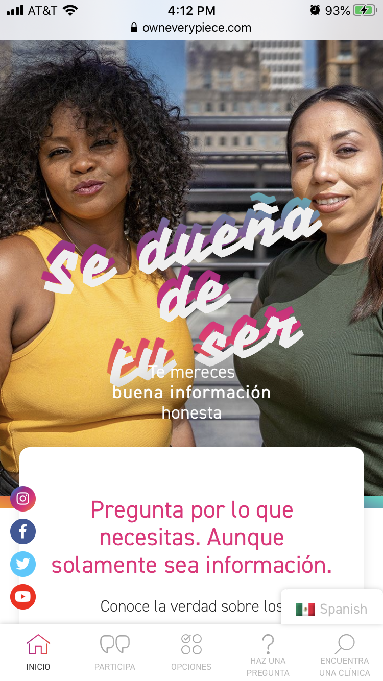 The team over at Own Every Piece wanted to reach more women by providing their website content in Spanish. I organized a focus group for Spanish-speaking women, ages 18-30 to make sure that translations made sense with our audience. After conducting this focus group, I fact-checked and finalized translations before publishing content.